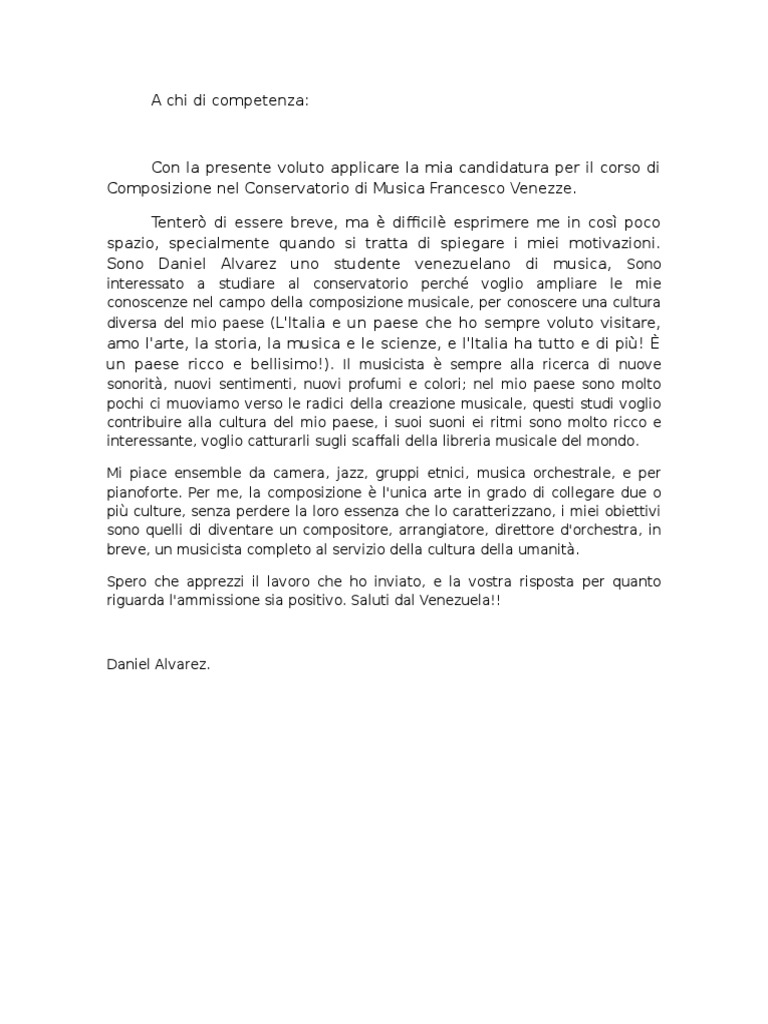 Come scrivere una lettera motivazionale IED? Come si scrive una lettera di motivazione per l'università? — Come si scrive una lettera di motivazione per l'università? Di seguito troverai alcuni ... Descubra vídeos populares sobre lettera motivazionale lavoro - TikTok Descubra vídeos curtos sobre lettera motivazionale lavoro no TikTok. Assista a conteúdos populares dos seguintes criadores: Stars & Cows(@stars_and_cows), Just Knock 👊🏻(@justknock.it), Darietto⚡️(@dario_capobianco), Junior Enterprise Bologna(@jebo.bologna), Martina Micòle (@martinamicole). Explore os vídeos mais recentes com as hashtags: #motivazionale, #videomotivazionale, # ... Lettera motivazionale università: ecco come scriverne una Lettera motivazionale esempio: borsa di studio. Una lettera motivazionale per università deve mettere in evidenza traguardi e risultati che hai raggiunto non soltanto in ambito strettamente accademico. L'Università non è solo un "esaminificio" fine a se stesso, pertanto devi riuscire a mettere in evidenza le tue peculiarità più importanti. Come scrivere una lettera di presentazione nel settore della ... Chi lavora nel settore della comunicazione lo sa. Sa che la differenza tra "forma" e "sostanza" può essere impercettibile. Prima di mettervi a scrivere la vostra lettera di presentazione, ricordate quindi sempre che, per ottenere un lavoro in cui le capacità espressive sono fondamentali, non basta spiegare al recruiter le ragioni che vi spingono ad avere quel posto, né quali sono ...