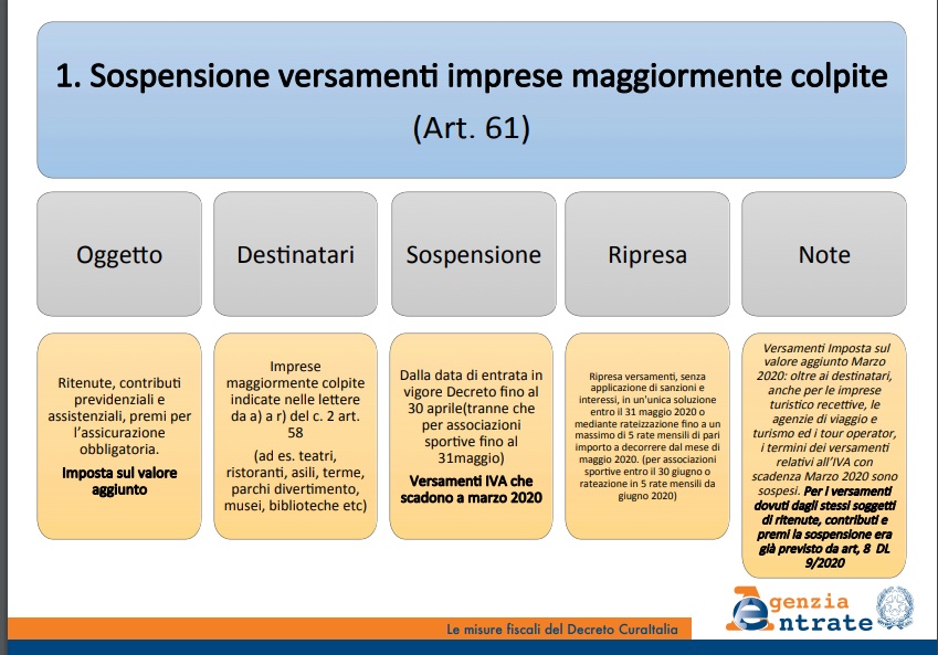Circolare 11. COVID19 - DILAZIONE PAGAMENTI FORNITORI Molti Clienti ci hanno chiesto la formulazione di una lettera, strutturata, per poter richiedere ai propri Fornitori dilazioni, ritardi o sospensioni dei pagamenti. Il Decreto Legislativo Cura Italia non prevede disposizioni riguardanti la sospensione dei pagamenti ai Vs fornitori, trattandosi di rapporti di natura privatistica.