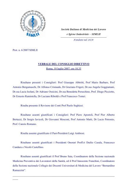 societa' italiana di medicina del lavoro e igiene industriale ...