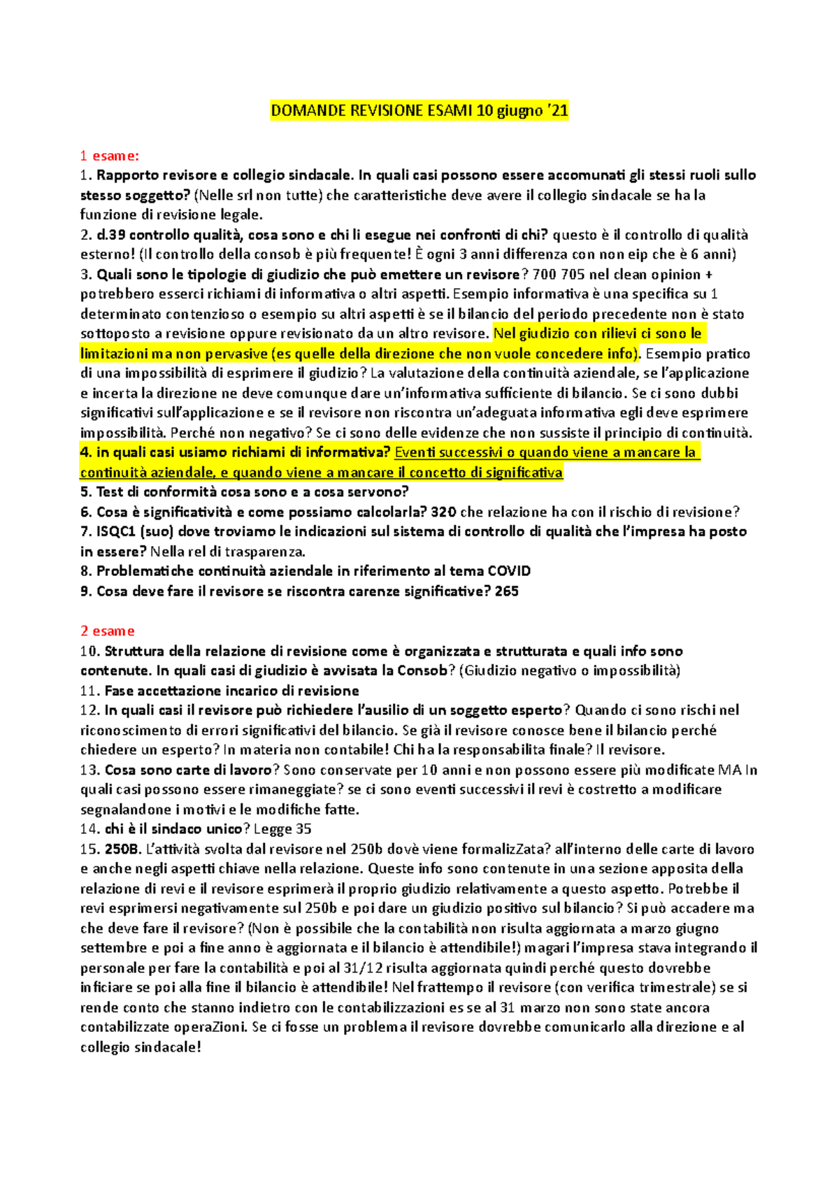 Domande Esami 10 giugno e 1 luglio revisione - DOMANDE ...