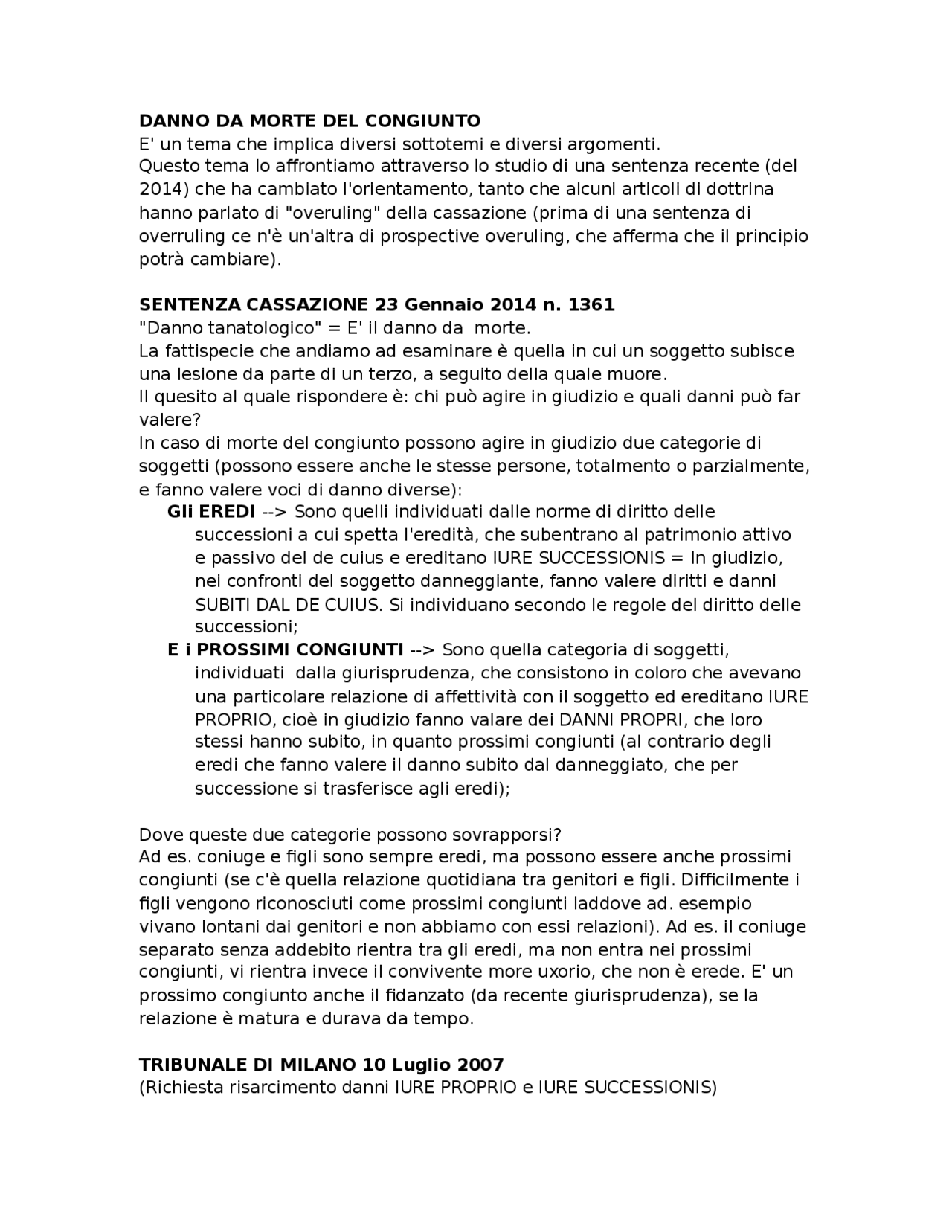 Il risarcimento del danno da morte del congiunto - canestriniLex Il risarcimento del danno da morte del congiunto 16 Giugno 2014, Nicola Canestrini Il risarcimento del danno conseguente alla perdita della vita ("danno da morte" o "danno tanatologico"), nonchè la trasmissibilità del credito risarcitorio della vittima, rappresentano tematiche complesse e fortemente dibattute.
